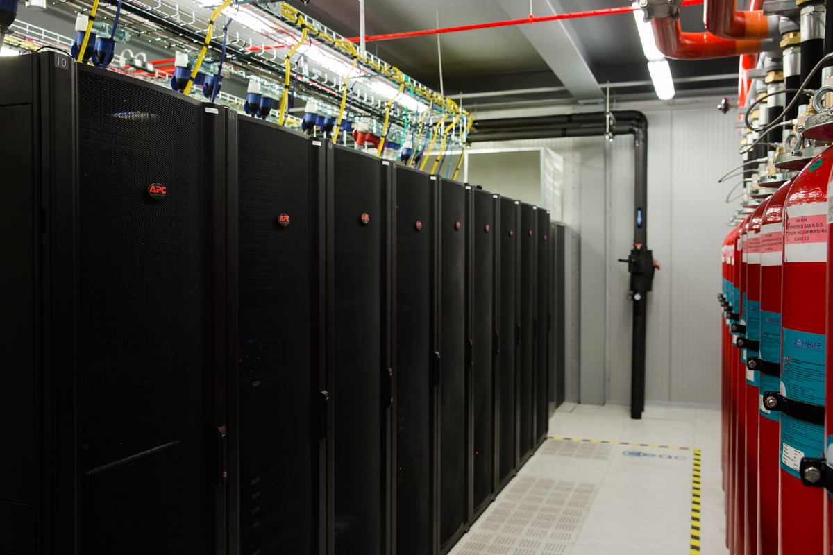 В помещениях дата-центра непрерывная работа оборудования обеспечивается при помощи двойной системы климат-контроля Emerson Network Power – мощного оборудования со своей насосной станцией и 29 тоннами охлаждающей жидкости. Система климат-контроля поддерживает наиболее подходящую для данных температуру, и она устанавливается независимо от прочего оборудования.