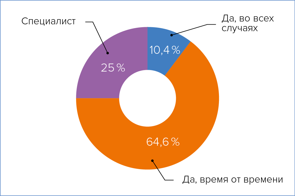 Интересен также вопрос о сумме взятки. В большинстве случаев она превышает 5 % от общей стоимости проекта, что достаточно немало. Еще в четверти ситуаций «откат» лежит в диапазоне 1–3 % (рис. 7). В то же время некоторые из опрошенных участников на условиях анонимности сообщали о суммах в десятки процентов.
