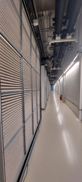 Схема кондиционирования с применением ВОК была реализована и испытана в различных режимах работы в действующих машинных залах ЦОД IXcellerate MOS5 с общей проектной IT-нагрузкой более 30 МВт. В типовой конфигурации одна ВОК включает 12–18 теплообменных аппаратов холодопроизводительностью до 220 кВт каждый и 70–90 вентиляторов с расходом воздуха до 8 000 м³/ч каждый.