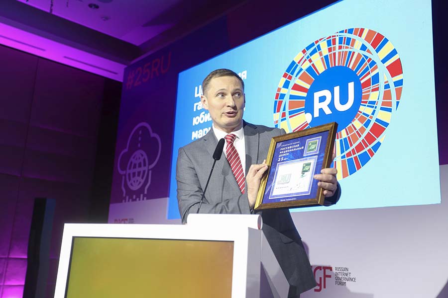 Сразу после пленарной сессии состоялась торжественная церемония памятного гашения художественной марки, посвященной 25-летию российского национального домена .RU. В церемонии приняли участие депутат Государственной Думы Федерального Собрания Российской Федерации Леонид Левин, заместитель руководителя Федерального агентства связи Владимир Шелихов, руководитель Федерального агентства по печати и массовым коммуникациям Михаил Сеславинский, директор Российской ассоциации электронных коммуникаций Сергей Плуготаренко. Вел церемонию директор Координационного центра доменов .RU/.РФ Андрей Воробьев. По окончании мероприятия участникам торжественной церемонии гашения были вручены памятные рамы с только что погашенными марками.