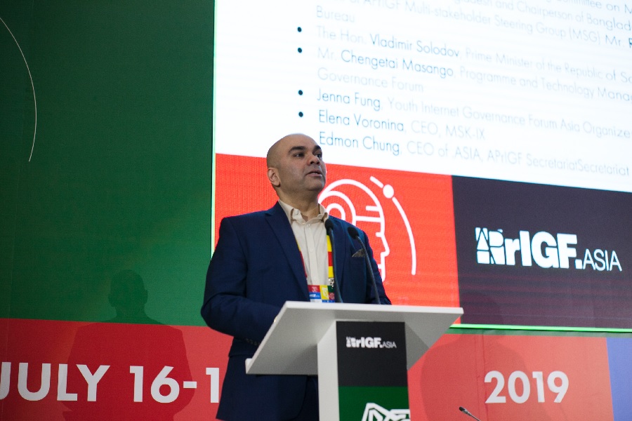 Открыл форум директор Координационного центра доменов .RU/.РФ Андрей Воробьев. Он отметил, что 2019 год стал юбилейным и для APrIGF, который отмечает свое 10-летие, и для Российского форума по управлению интернетом, который в этом году был проведен тоже в 10-й раз, и для национального российского домена .RU, которому в 2019 году исполнилось 25 лет.